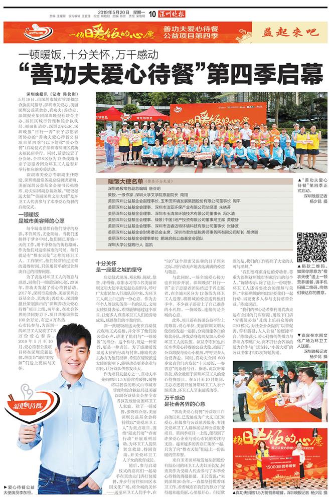 5月20日,《深圳晚報》等媒體對此次愛心待餐活動進行了詳細(xì)的報道,對潔亞環(huán)保公司和朱總的公益事跡給予了充分的肯定。