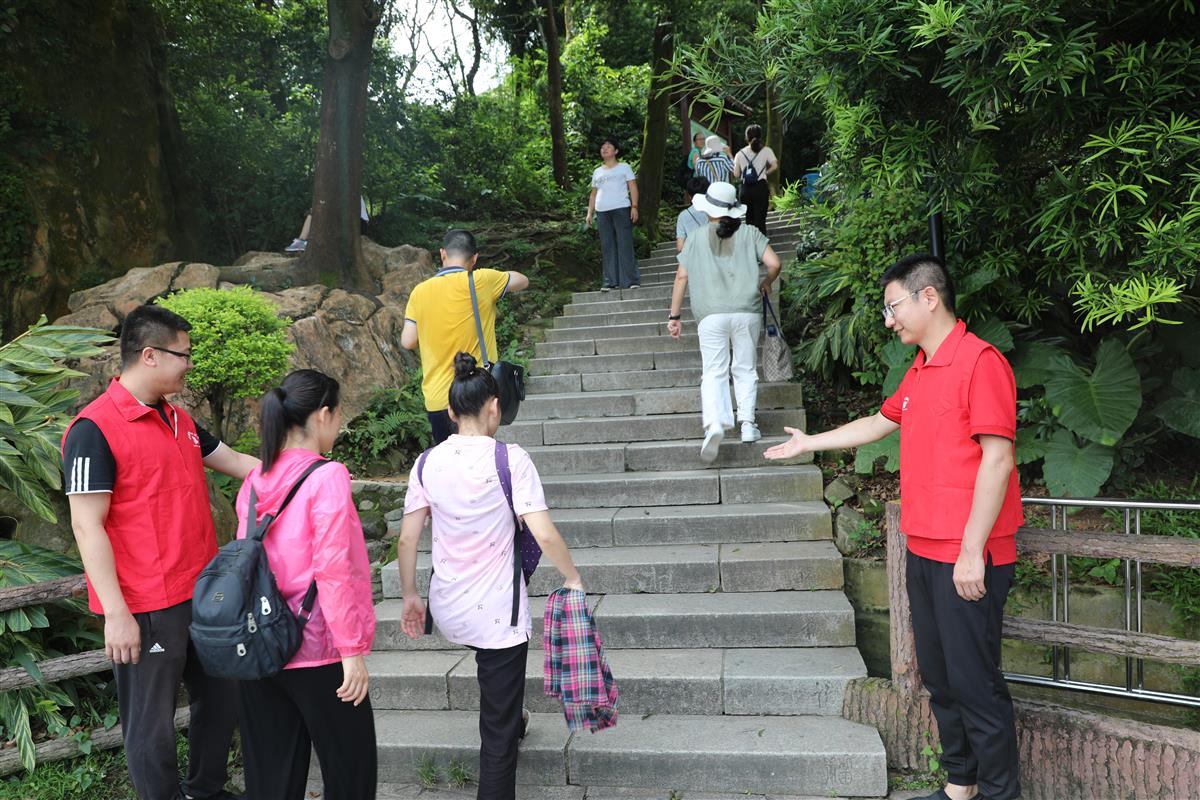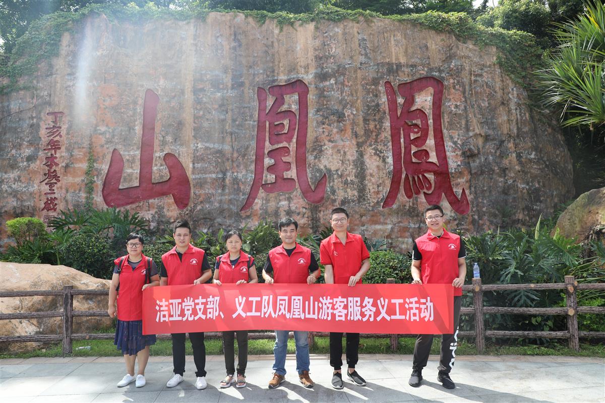 郁翠蒼松,火紅楓葉,百里爭艷,疑似鳳凰落九洲。7月6日上午,潔亞黨支部、義工隊穿著火紅的義工服,化身“一只只火鳳凰”,穿梭于鳳凰山中,為前來觀光的游客提供指引服務,幫助游客更好地找到登山的路和各景點的方位,并提醒游客愛護森林,保護環(huán)境。