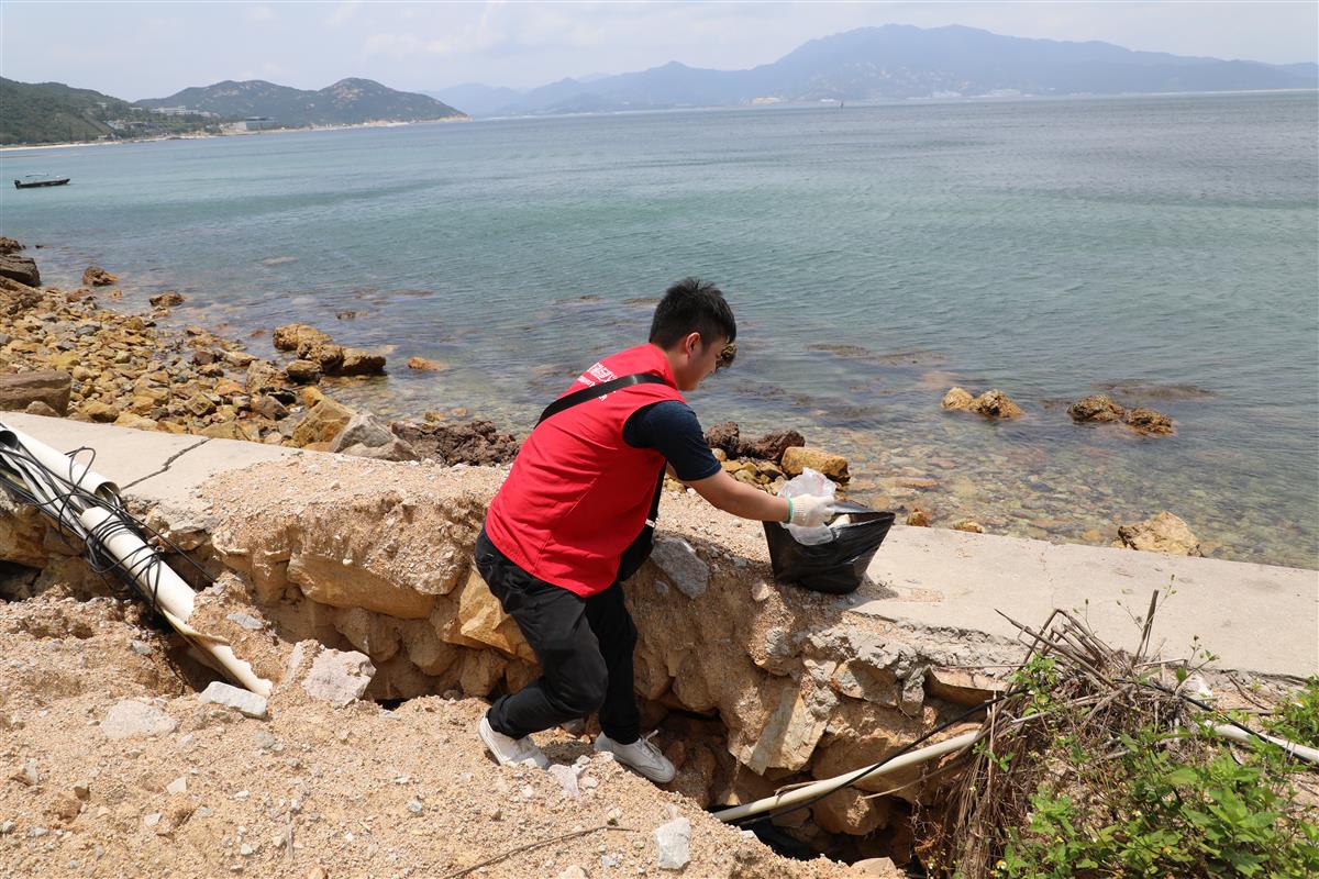 南澳東涌海岸線風(fēng)景優(yōu)美,游客眾多,因此地遠離深圳市區(qū),生態(tài)環(huán)境保護得很好,沒有過度開發(fā),保持了原生態(tài)的秀麗風(fēng)景,這里天更藍、水更清,已成為深圳市民出游的首選。但出游的部分市民并沒有很好地養(yǎng)成不亂扔垃圾的習(xí)慣,仍然可見隨手丟棄的紙巾、果皮、礦泉水瓶、飯盒、零食包裝袋及用過的塑料袋等垃圾。你看,潔亞黨員和義工們發(fā)揚不怕苦不怕臟不怕累的精神,正在一個一個清撿它們呢,隨著這些垃圾被清理,此片海岸線又保持了她特有的魅力!