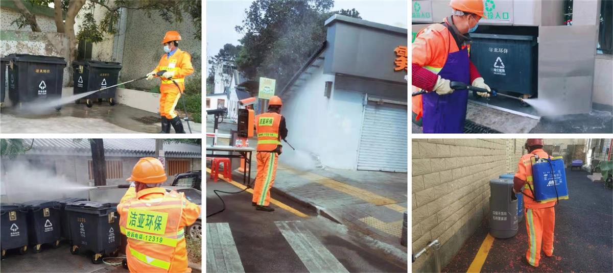 在疫情防控期內(nèi),潔亞承擔(dān)了責(zé)任轄區(qū)所有檢查關(guān)卡、隔離區(qū)的消毒工作、設(shè)置的臨時公廁管養(yǎng)服務(wù)、垃圾回收消毒等工作。
