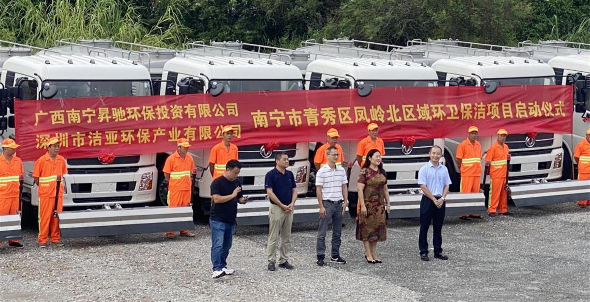 9 月 15 日,在南寧市各級領(lǐng)導(dǎo)的關(guān)心幫助和大力支持下,由廣西南寧昇馳環(huán)保投資有限公司和深圳市潔亞環(huán)保產(chǎn)業(yè)有限公司聯(lián)合中標(biāo)的南寧市青秀區(qū)鳳嶺北區(qū)域環(huán)衛(wèi)保潔項目啟動儀式盛大舉行。該項目的順利啟動,加速了南寧市實現(xiàn)環(huán)衛(wèi)作業(yè)方式專業(yè)化、標(biāo)準(zhǔn)化,管理精細(xì)化,服務(wù)社會化進(jìn)程,全面提升了城市市容市貌,更好的打造成城市環(huán)保服務(wù)模式“環(huán)衛(wèi)保潔市場化”標(biāo)桿。