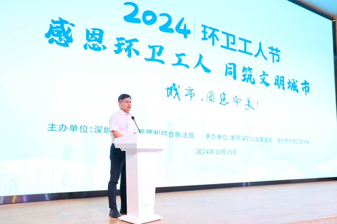 當天,市城管和綜合執(zhí)法局聯(lián)合美麗深圳公益基金會、深圳市環(huán)境衛(wèi)生協(xié)會在中心書城南區(qū)大臺階舉辦“感恩環(huán)衛(wèi)工人 同筑文明城市”活動,對全市100名從事一線環(huán)衛(wèi)工作的優(yōu)秀環(huán)衛(wèi)工人進行褒揚。深圳市副市長代金濤,全國政協(xié)委員、美麗深圳公益基金會名譽理事長、信義玻璃控股有限公司董事局主席李賢義,市城管和綜合執(zhí)法局局長張國宏,市總工會副主席李紅兵,以及60名環(huán)衛(wèi)工人代表、基金會理事單位、愛心企業(yè)、愛心商戶代表出席了活動?;顒蝇F(xiàn)場為10名優(yōu)秀環(huán)衛(wèi)工人代表頒發(fā)榮譽證書。
