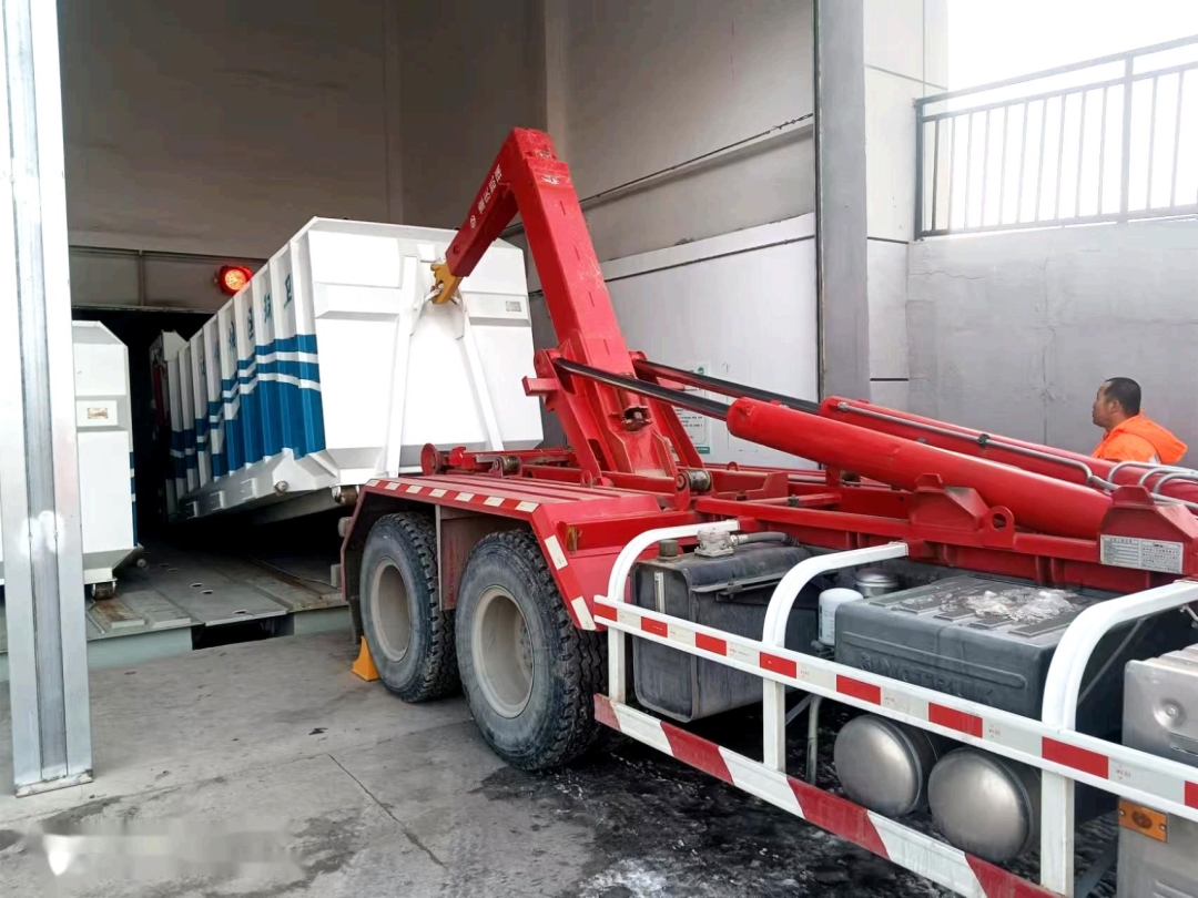 試運(yùn)營階段,7條壓縮線同時啟用,配備3輛12噸位、4輛15噸位勾臂運(yùn)輸車、3個20立方米中轉(zhuǎn)運(yùn)輸箱、4個25立方米轉(zhuǎn)運(yùn)箱及7名專業(yè)人員,實現(xiàn)了垃圾的全自動壓縮、密閉負(fù)壓管理及全程密閉運(yùn)輸,日均垃圾處理能力50噸,確保了垃圾“日產(chǎn)日清”。