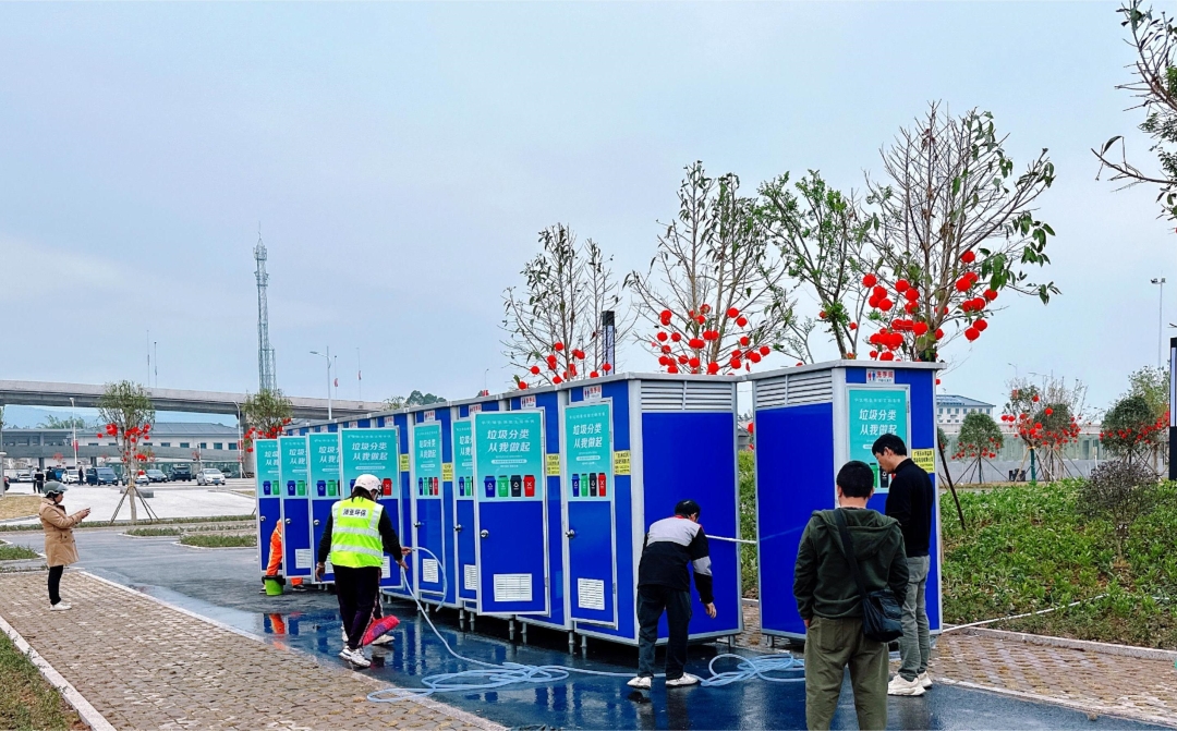 為應對初期客流量大且存在設施不足的問題,潔亞環(huán)保加強了對站前廣場內臨時簡易廁所的衛(wèi)生管理,每日安排三個班次的人員定時檢查和沖洗,在開通儀式當天增加至每班4人次,及時更換垃圾簍內垃圾,有效控制異味,讓旅客享受到干凈的乘車出行環(huán)境。