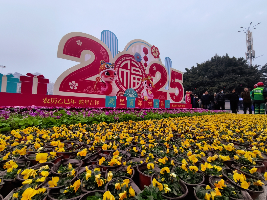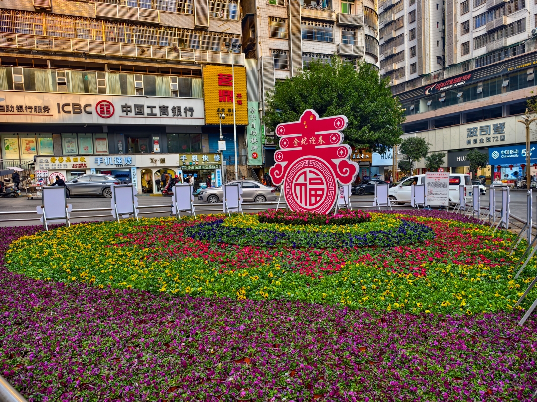 以“蛇”造景,拉滿蛇年喜慶氛圍。蛟龍去,靈蛇來。潔亞環(huán)保以“靈蛇獻(xiàn)瑞,喜迎新春”為主題,用西洋杜鵑、三色堇、石竹、金盞菊、報春、角瑾、仙客來等鮮花,將5萬余盆色彩繽紛的鮮花簇?fù)砩ど?,在萬興廣場、老車壩轉(zhuǎn)盤、文峰山景區(qū)、高速路口打造綠植景觀,拉滿濃濃的“蛇年”氛圍。