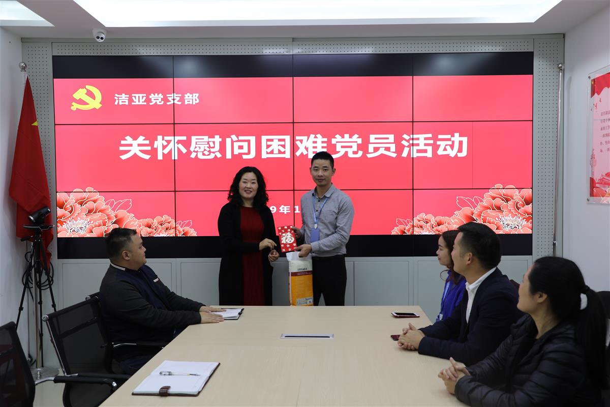 潔亞黨支部在春節(jié)來臨之際,開展對(duì)困難黨員的慰問活動(dòng),1月19日上午,潔亞黨支部書記朱曉芬同志走訪慰問了部分困難黨員家庭,為他們帶去了黨及潔亞公司的關(guān)懷和溫暖,并向潔亞廣大黨員致以新年的問候。